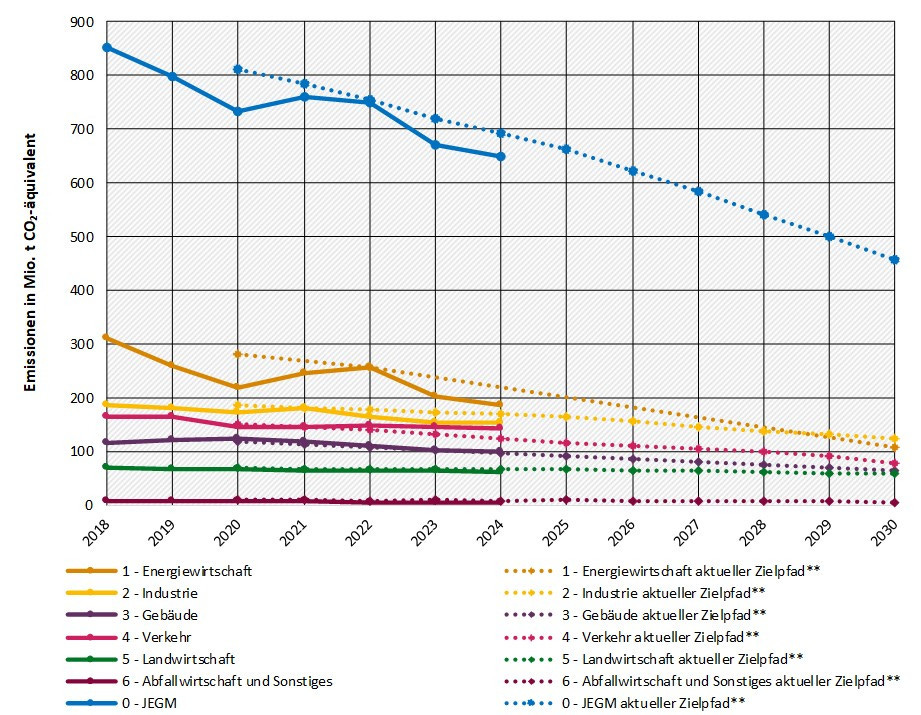 The development will probably continue like this. The strong expansion of renewable energies and networks, as well as emissions trading2, are guarantees for the continuous reduction of climate-damaging greenhouse gases.